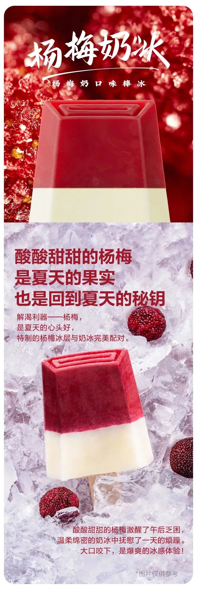 特制的杨梅冰层和奶冰完美配对激醒了午后的乏困