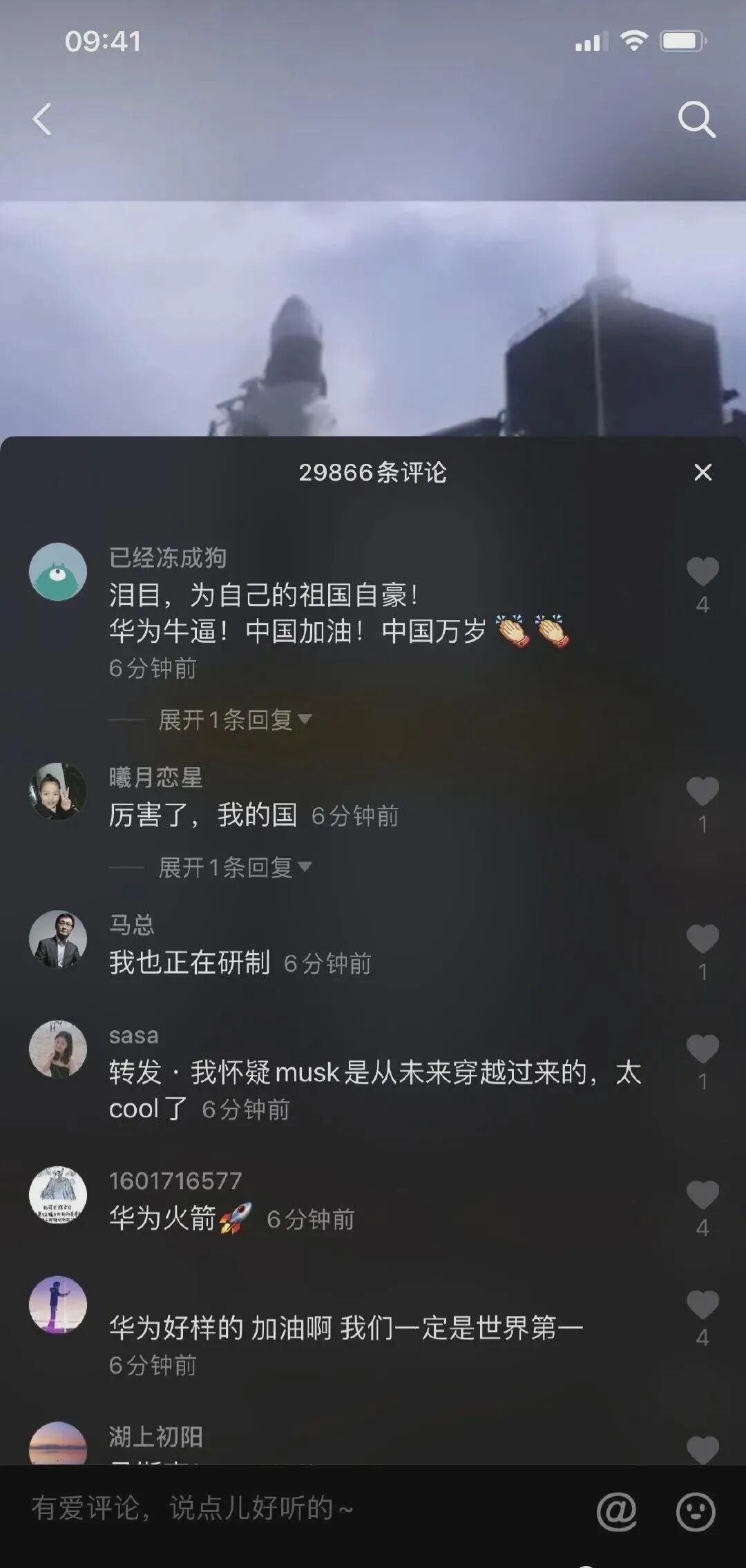去年,美国发射龙飞船,央视直播,评论区刷屏的都是中国加油、祖国越来越强大、为祖国自豪……还出现了华为牛逼、华为好样的、华为火箭、华为加油……拜托,先搞搞清楚,这是美国在发射火箭,虽然飞船名称中有一个“龙”字。结果一大群人跑过来,压根就没看内容,只看到一个“龙”字,就开始一窝蜂的自豪,结果连国籍都搞错了。看到这样尴尬的留言,觉得既好笑,又突然觉得好可悲。