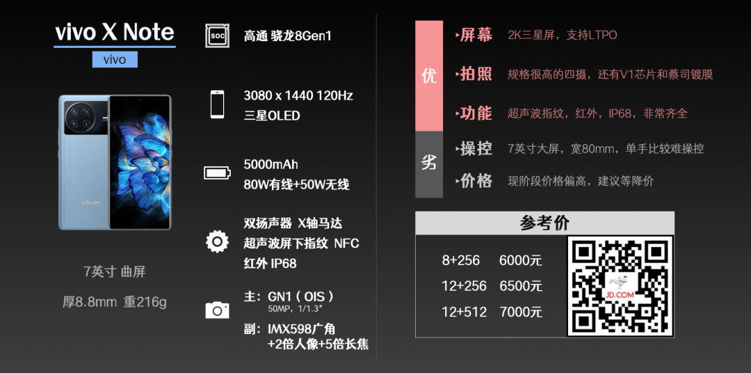 vivo最近出的这个X note,很像是X70 Pro+的放大版,主打商务风。用上了7英寸大屏,拍照依然有大底主摄,蔡司镀膜,潜望长焦等等,不过相较于X70 Pro+少了个微云台广角。