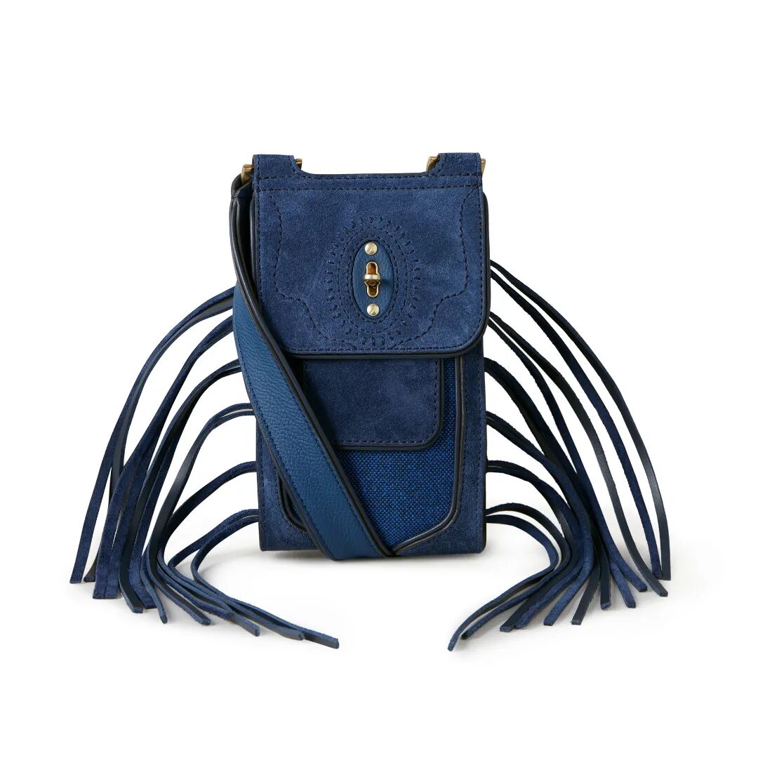 Nicholas Daley的创作对象是Antony包款,在近一年的准备时间里,他带领自己的设计团队,协同Mulberry团队共同重塑了Antony,为其添加了流苏细节和色块拼接元素,推出了五种尺寸大小的麂皮Antony。不过,这个胶囊系列里最喜出望外的构成却是一系列与音乐紧密相关的小配饰,包括吉他背带、萨克斯背带和拨片袋(同时可以存放硬币或是蓝牙耳机)。这些“小玩意”在任意一家皮具店铺里都是不常见的。