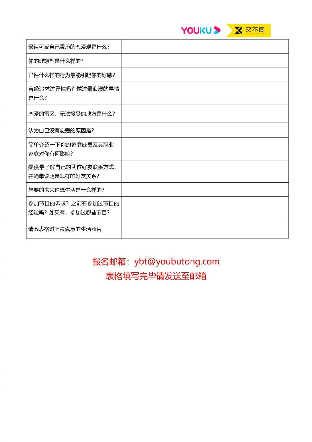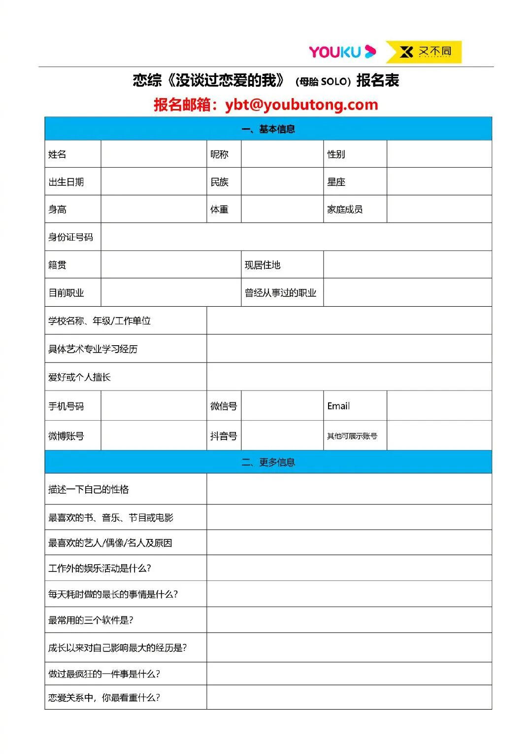 《没谈过恋爱的我》报名表