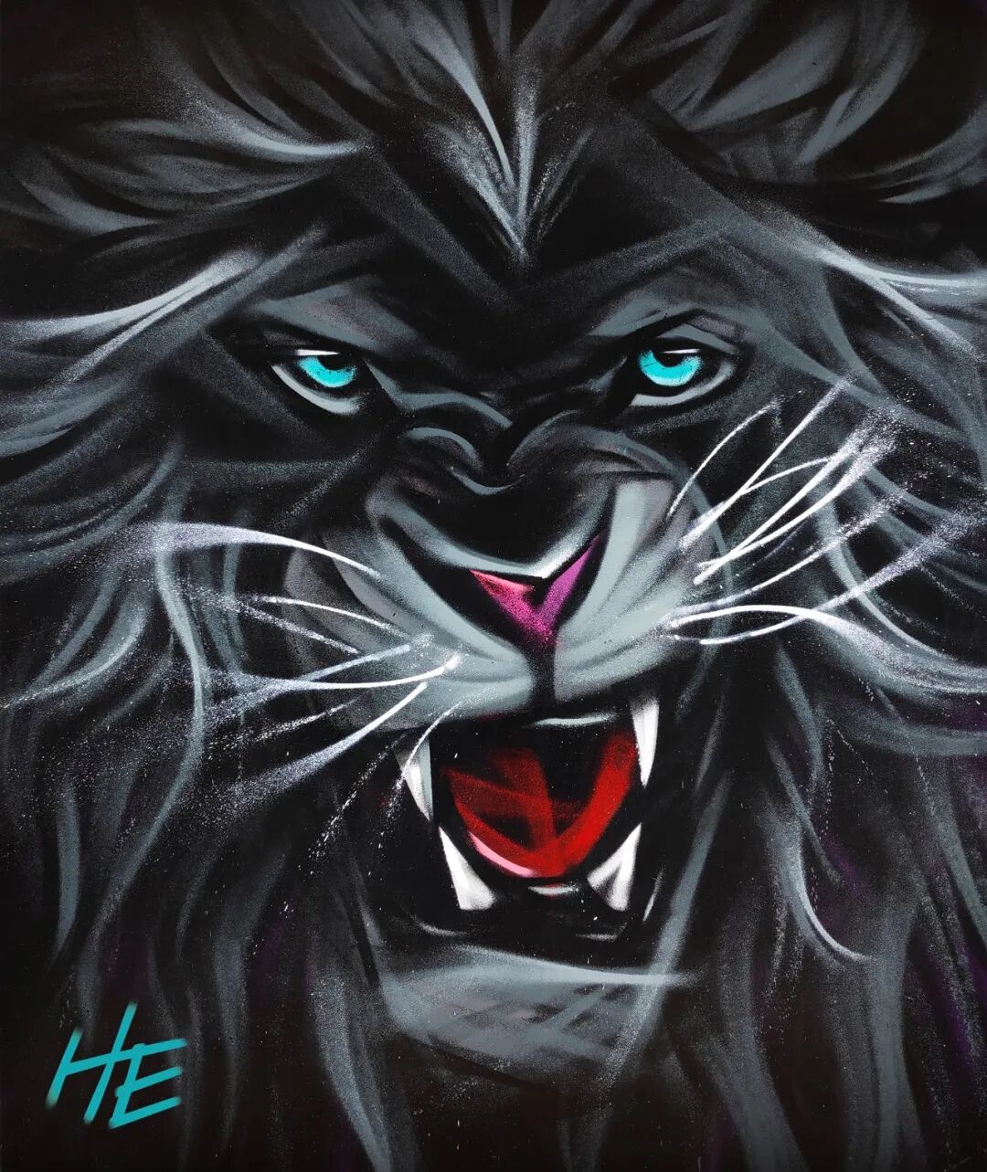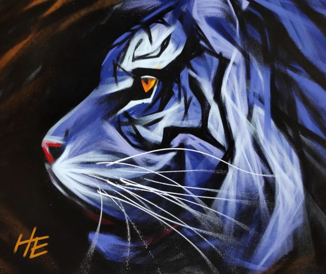 完成中国龙半年之后,涂鸦墙被拆除了。2019年凭《中国龙》“封神”之后,2020年的粉红狮、粉红豹又相继成为他的原创代表作。狮和豹这种猛兽,竟被他用粉嫩的颜色来呈现,居然还运用得大气磅礴,绚烂雄浑。且无论龙虎狮,都被他诠释出了未来感。其中的一个关窍,便是荧光色的运用。
