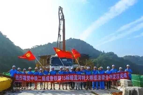 ▲近日,经过9小时连续作业,中铁二局二公司承建的成贵铁路贵阳境内连续梁跨度最大、桥梁最长的双线特大桥——暗流河特大桥第三十五跨现浇箱梁顺利完成浇筑,标志着暗流河特大桥现浇箱梁主体施工圆满完成。
