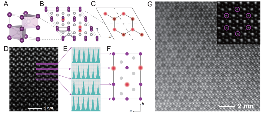 由于Ir空位的存在,使得Ir16Sb18具有独特的带褶皱的蜂窝状空位有序结构,这种空位有序方式尚未在其他材料中被观察到。从TEM中可以清晰看到这种独特的空位有序结构。![]()