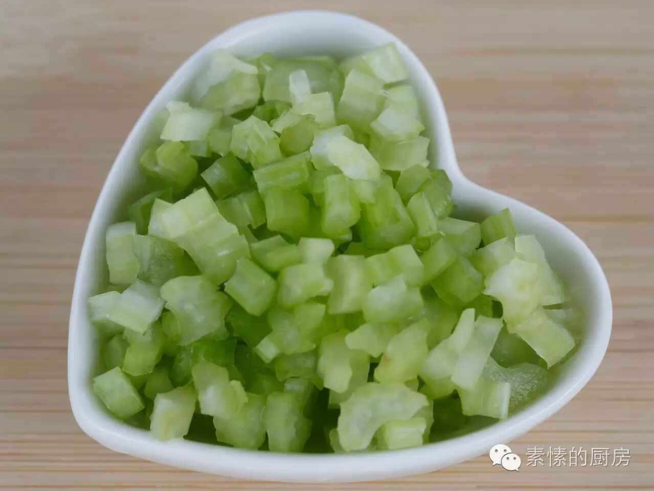 7.芹菜杆洗净,切成很细的粒。