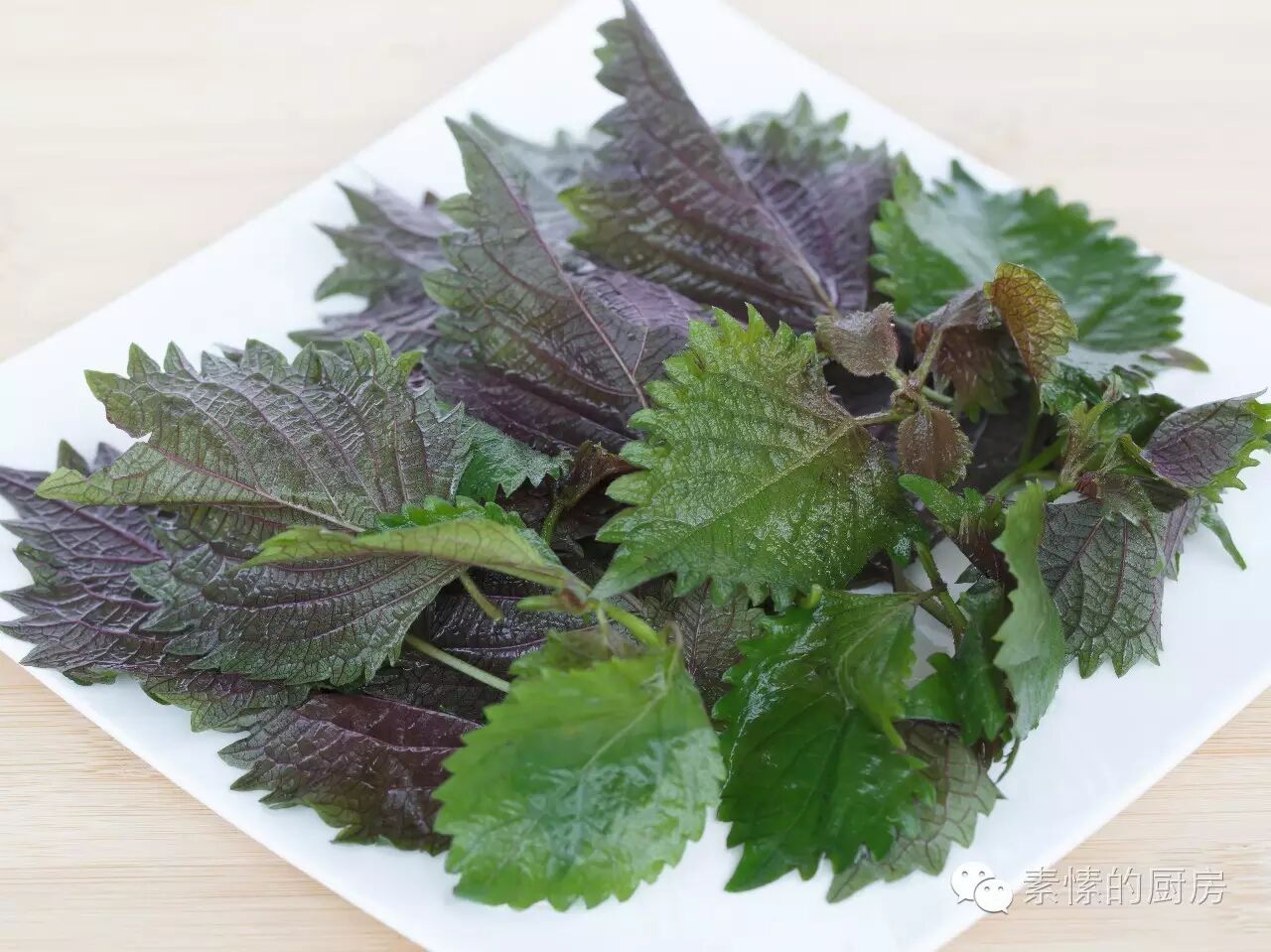 2. 摘下紫苏叶子,洗净。