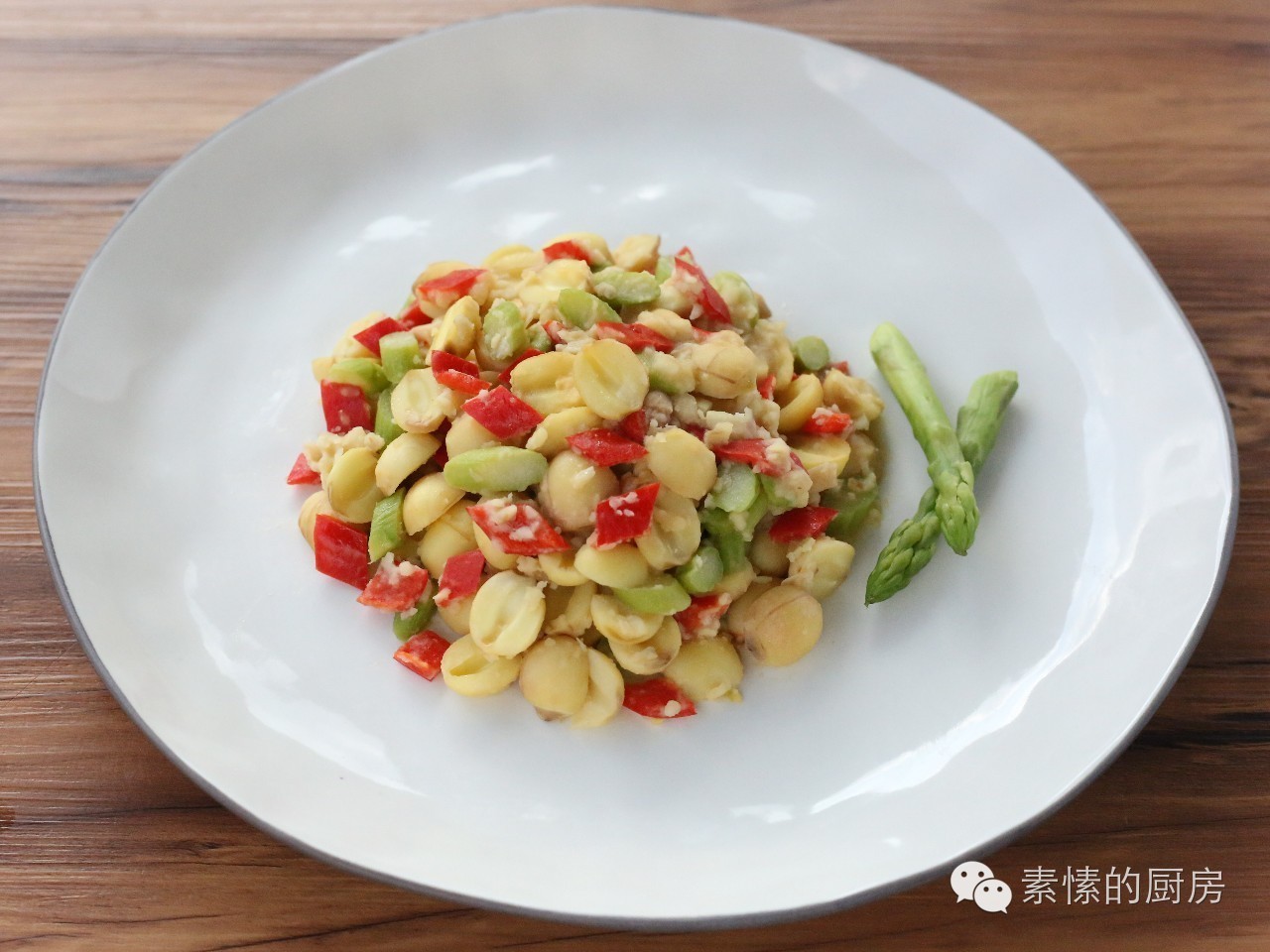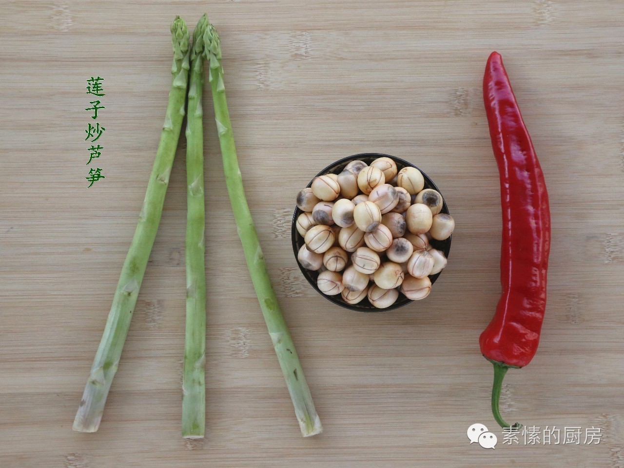 【主角】:新鲜莲子(或干莲子),芦笋,红椒。
