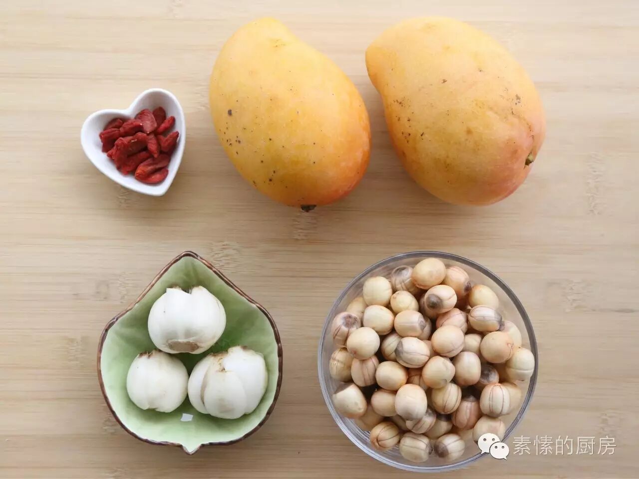 【主角】:芒果,新鲜莲子,新鲜百合。