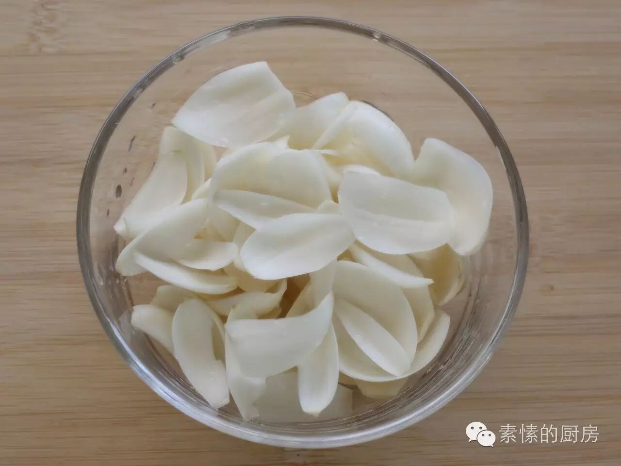 4. 新鲜百合切去根部,剥开,清理掉黑色部分,洗净。