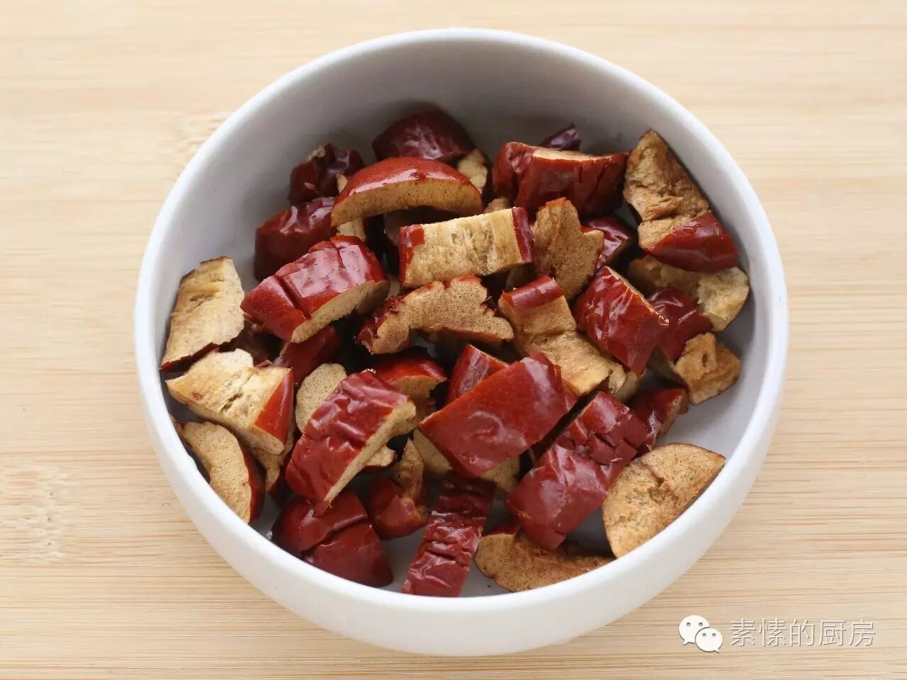 3.红枣去核,切成块。
