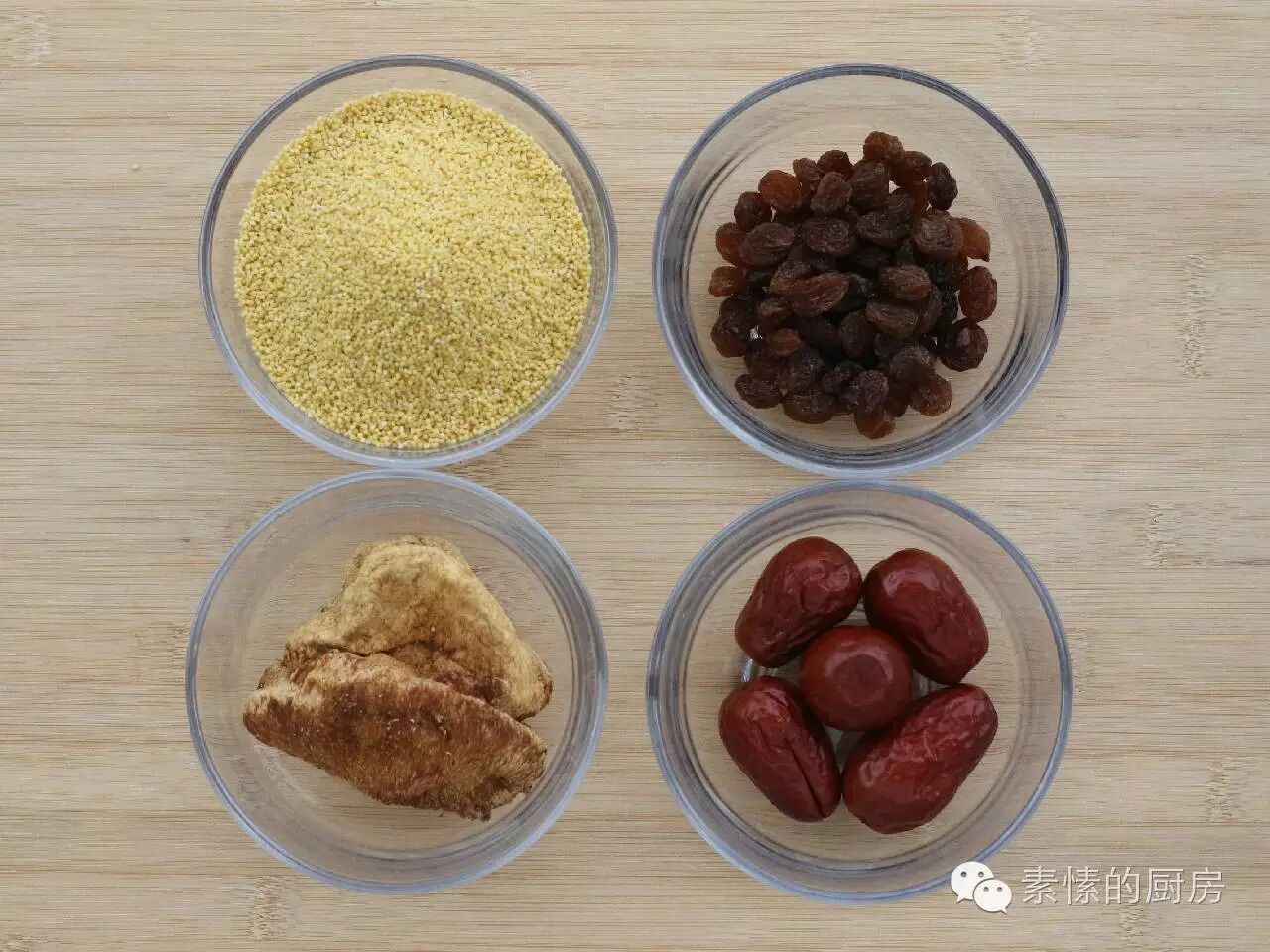 【主角】:小米,干(或鲜)猴头菇,红枣。