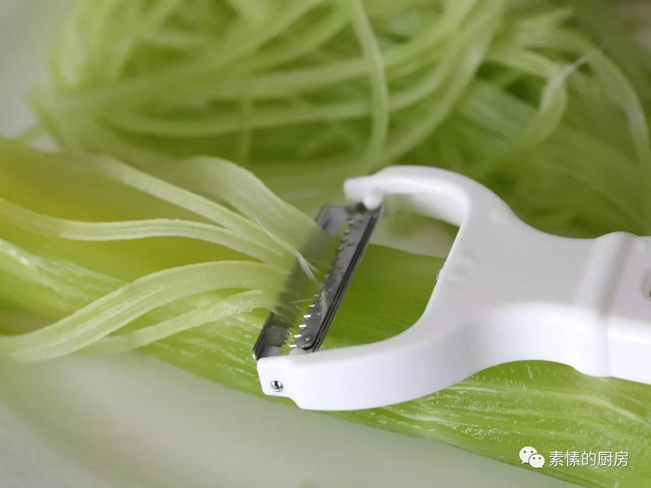 2.莴笋去皮,用刨丝器(网上有卖,十多元一个)刨成细长条,跟面条似的。