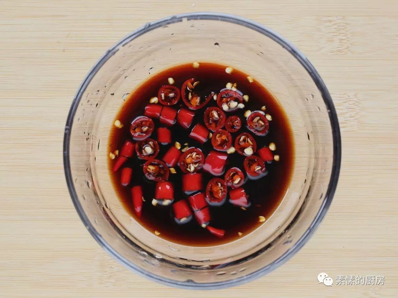 1.指天椒切成小圈,浸泡在有机酱油里。时间长短自定,泡一小时后酱油已经挺辣了,泡越久越辣。