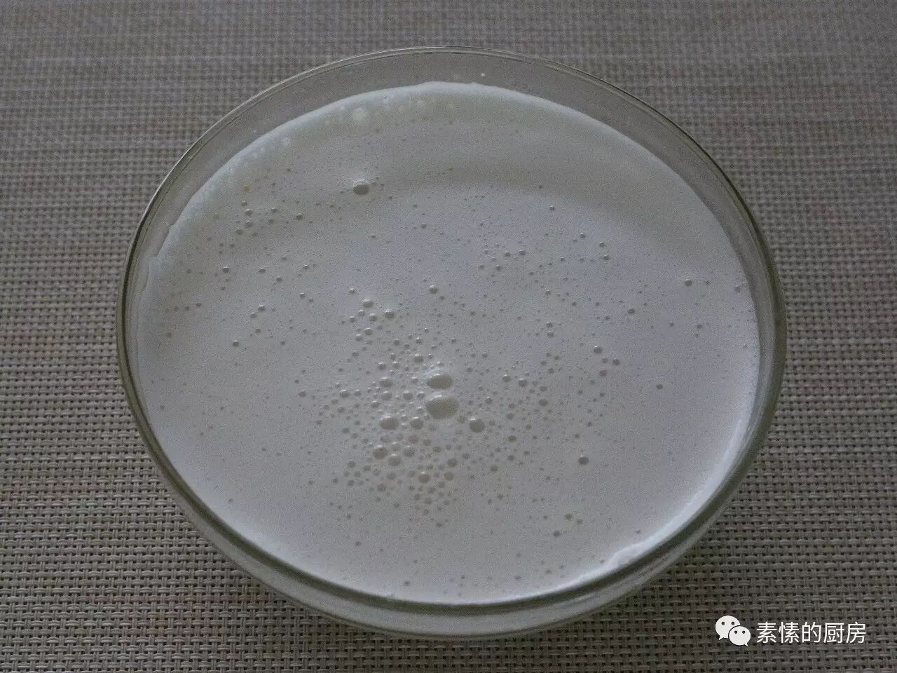 1. 杏仁浸泡大半日,清洗。加适量好水在料理机打成汁,用过滤袋滤出渣。【杏仁奶制作详情】