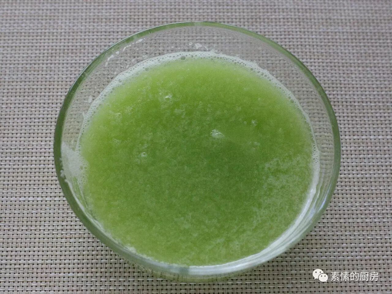 2. 小冬瓜去皮去籽,用榨汁机榨出汁。或用搅拌机加水打成糊,那就是浓汤。