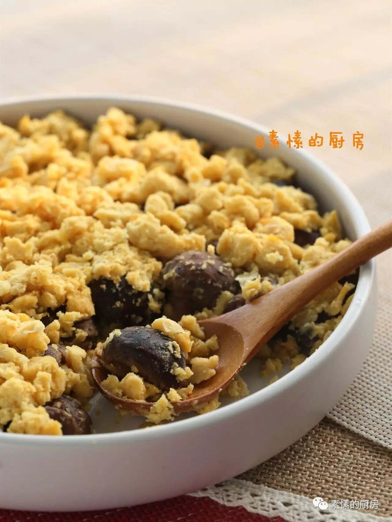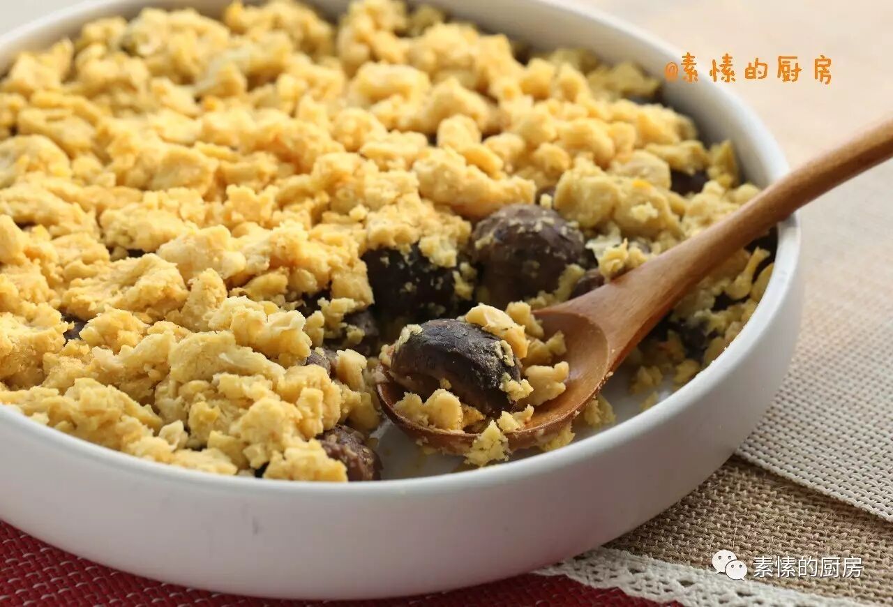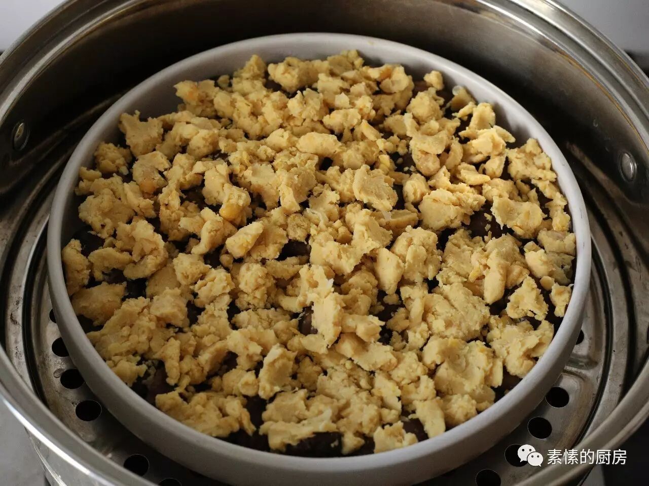 上次做的豆泥比较湿,可以用勺子抹平,吃起来是流沙感,今天的豆泥比较干,用手掰碎放上的,风味又不同。