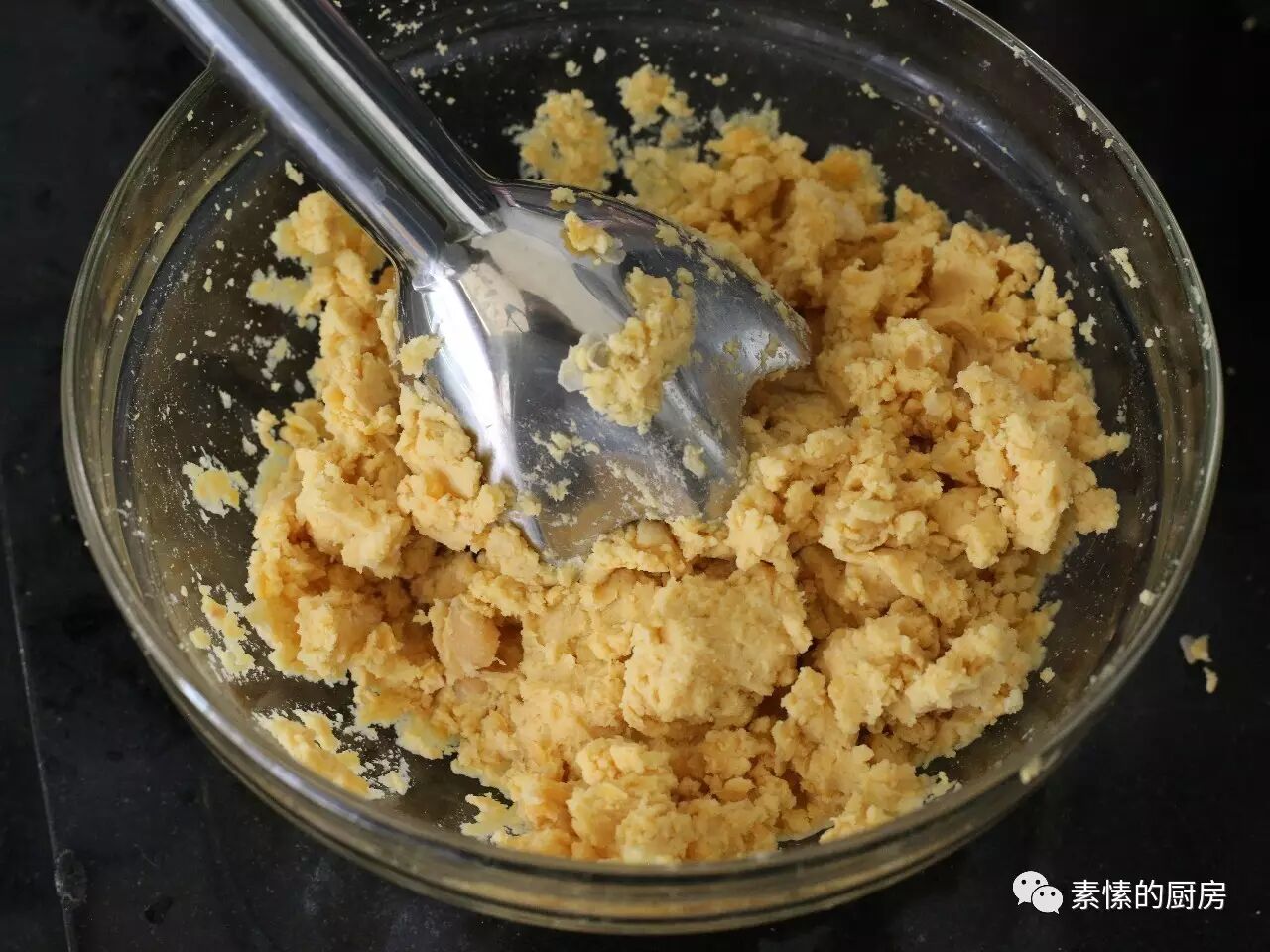 2. 将豆捞出,沥干水,搅拌成泥。