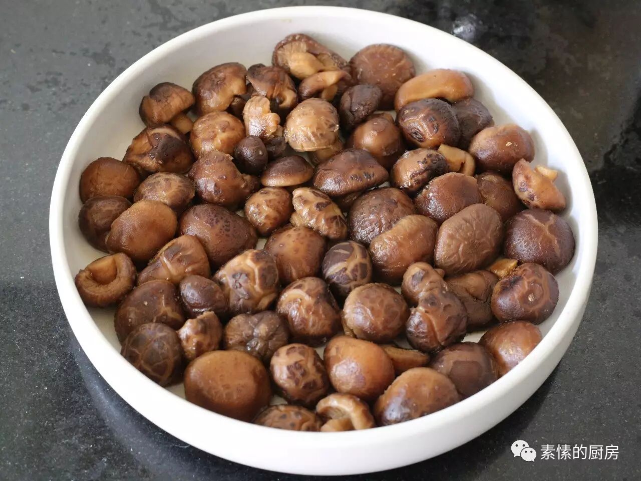 4.开锅后,如还有汤汁,继续煮收干汁。找一较平的盘子,将菇捞起铺于盘中。