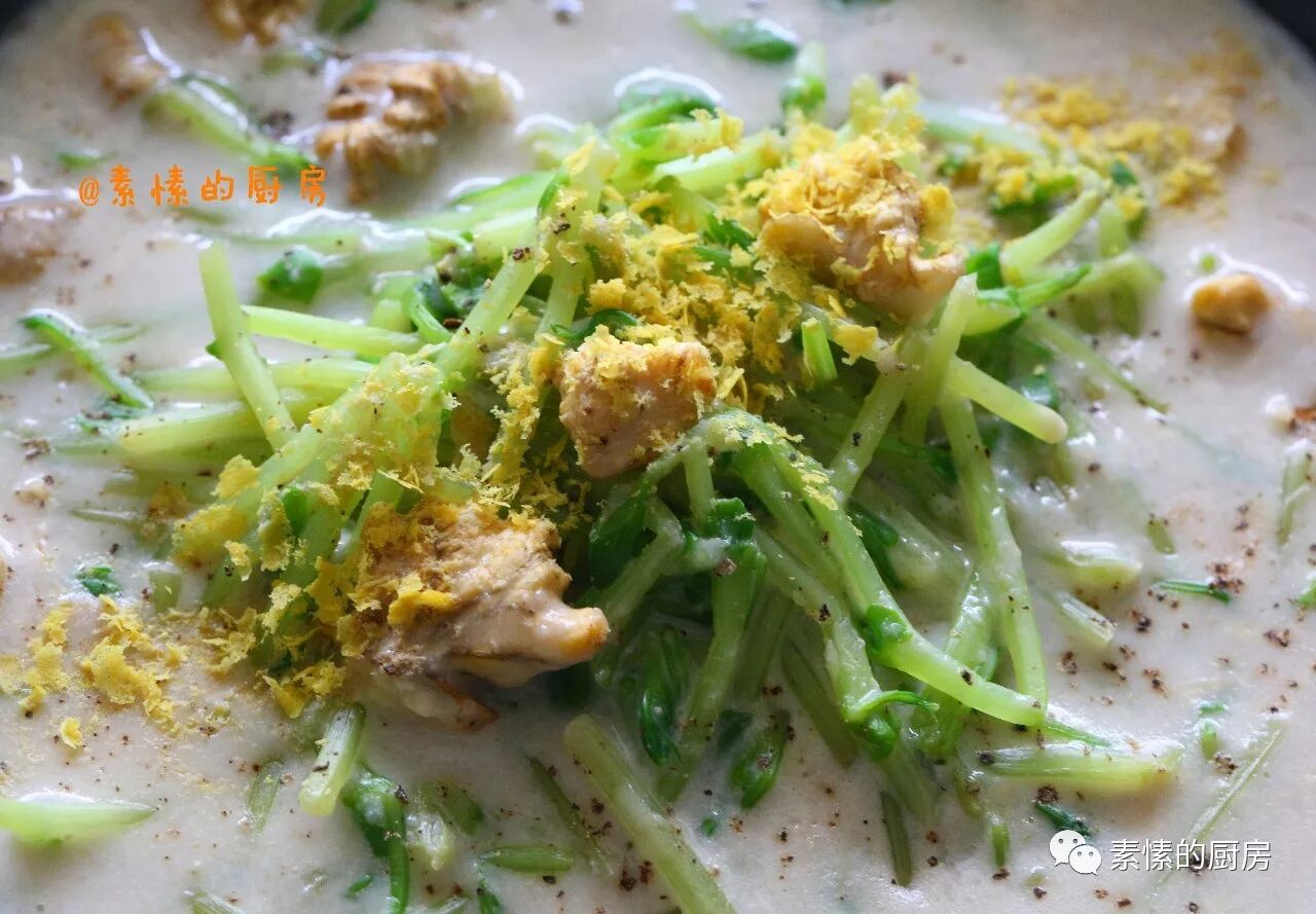 燕麦汁煮开后,直接下豆苗一起煮也可以,但是浓汤烧开比较慢,可能会导致豆苗煮得过久。