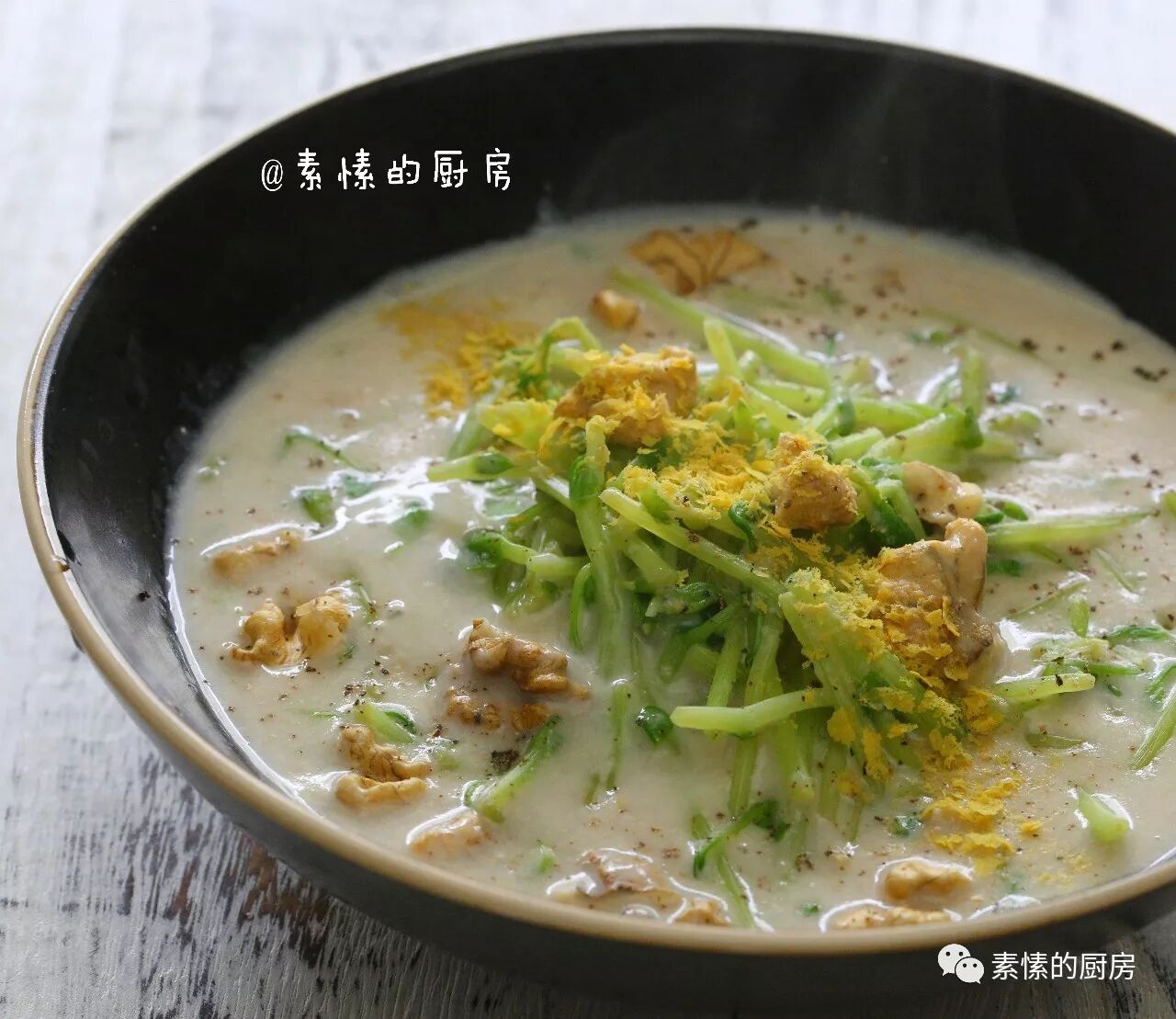 还有个上汤做法,奶白色的汤,多数用“三花奶”之类的,试吃官为了让素食馆放弃使用三花奶,献了一个燕麦浓汤秘方,终于结束了“三花奶”时代。