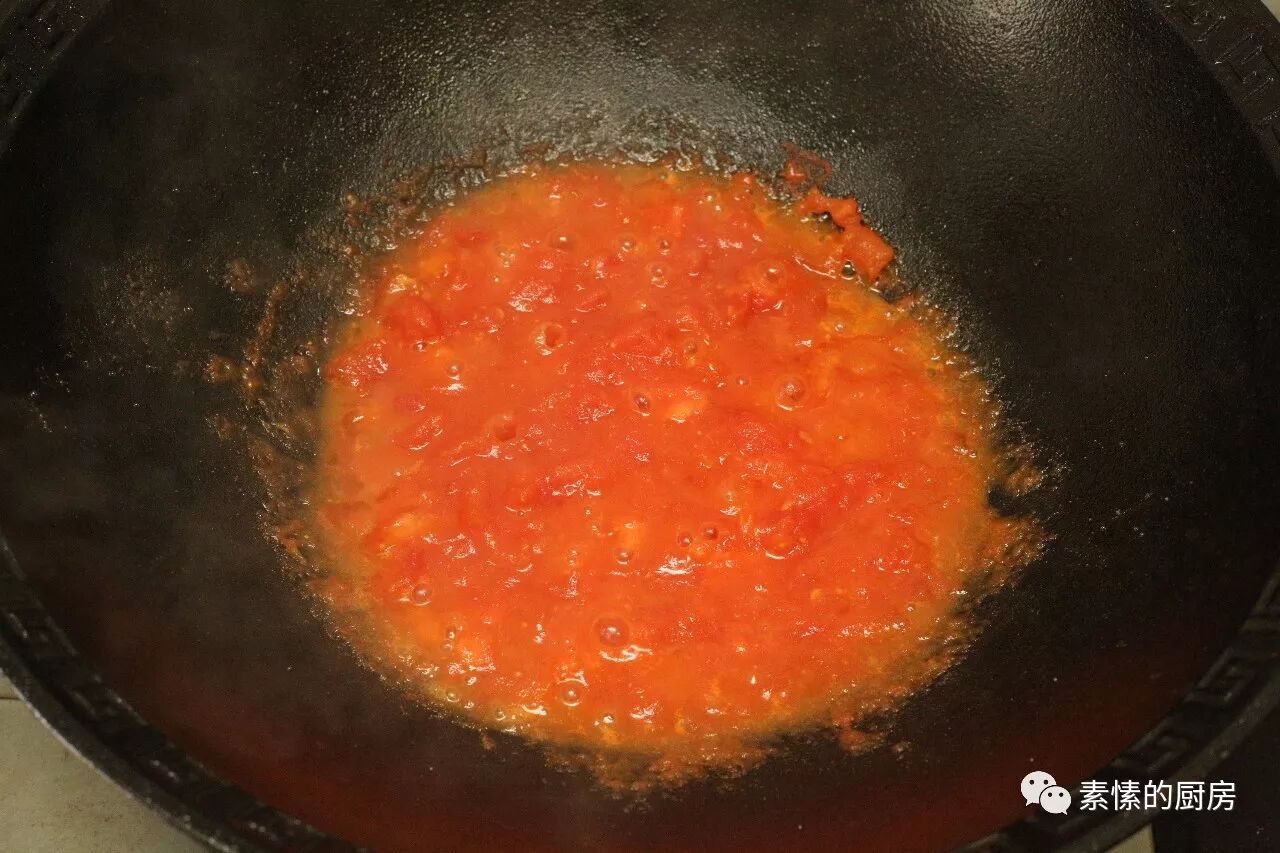 3. 炒时用铲稍压,小火煮成糊状。可能今天用的大铁锅质量好,翻炒了几下就成糊了。