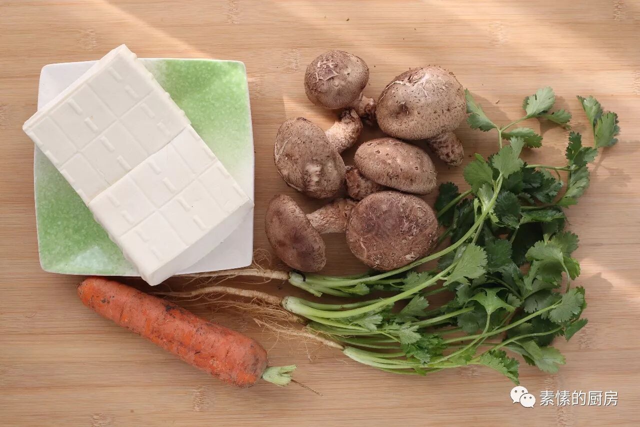 【主角】:豆腐,胡萝卜,香菇,香菜。