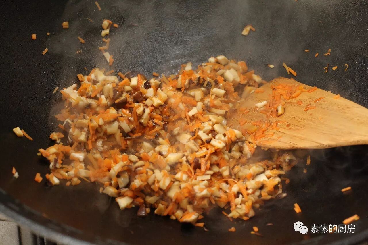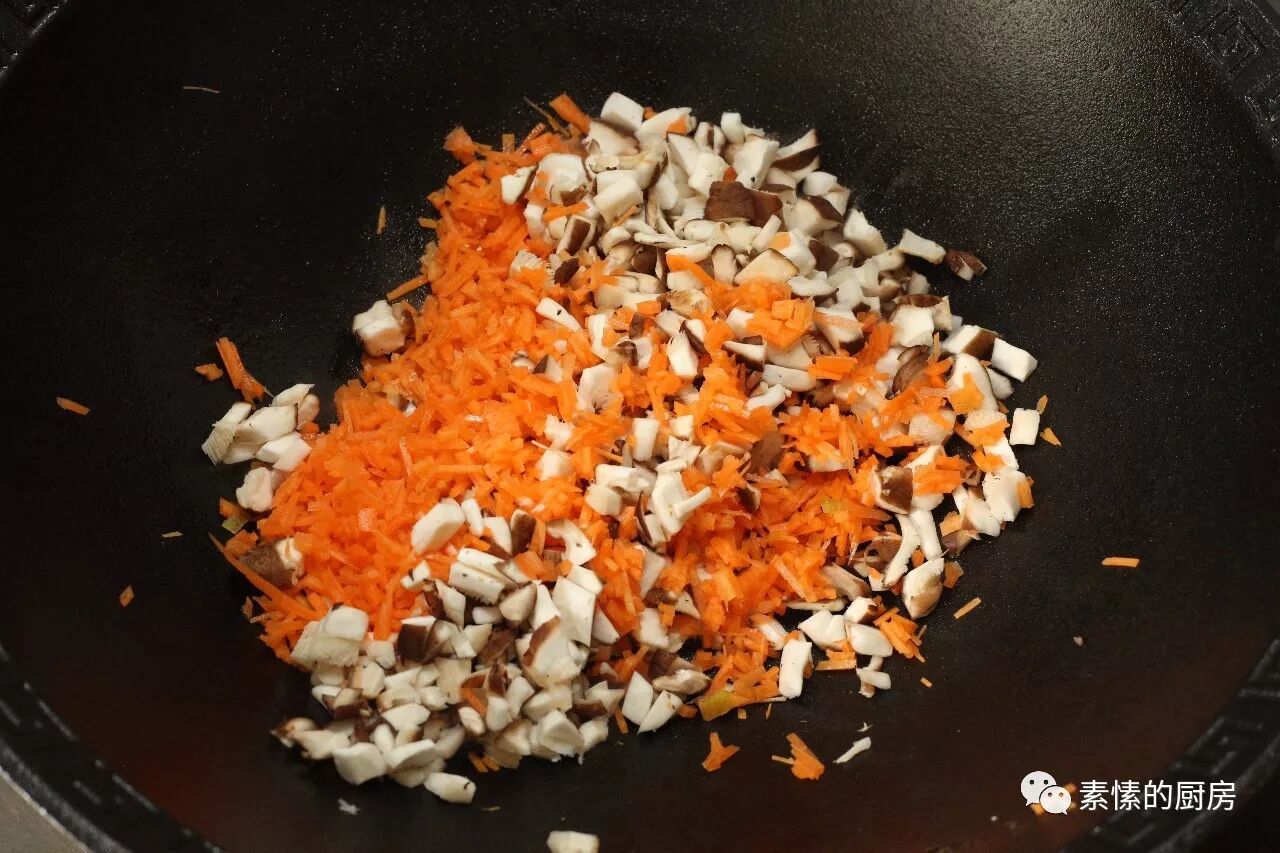 2.锅烧热少许油,倒入胡萝卜和香菇翻炒。