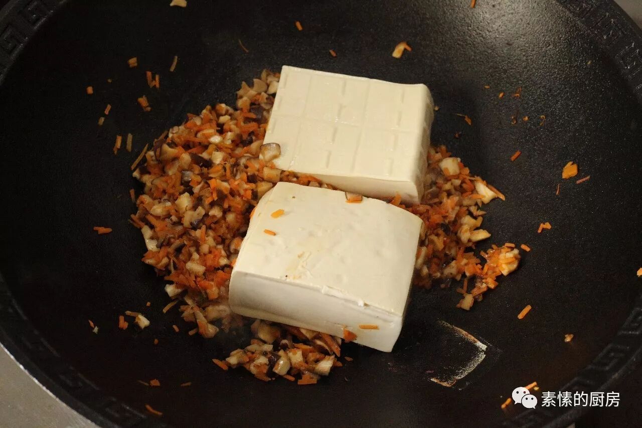 5. 以锅铲切碎豆腐,炒匀,加盐。