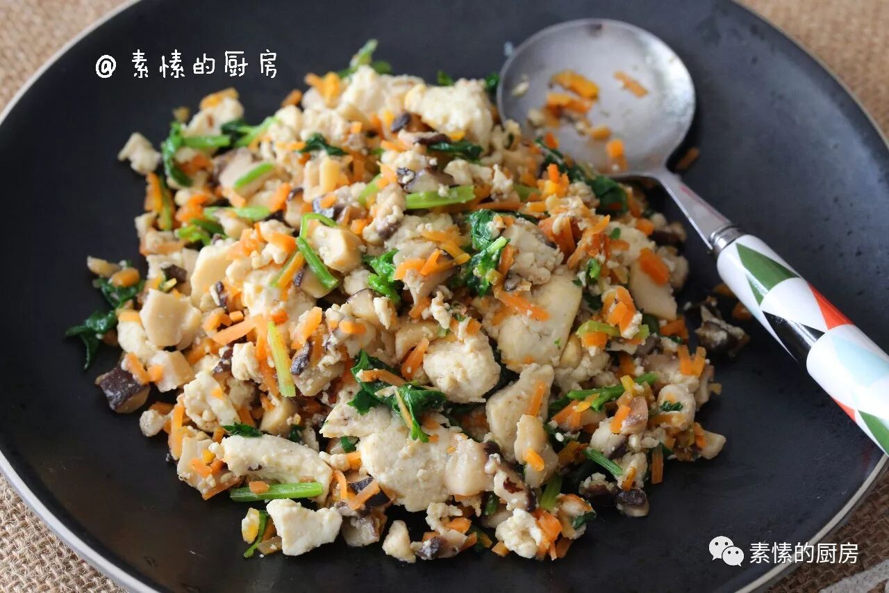 炒豆腐碎是小时候爱吃的一道菜,通常有肉沫,其实素的更好吃,做起来还轻松。