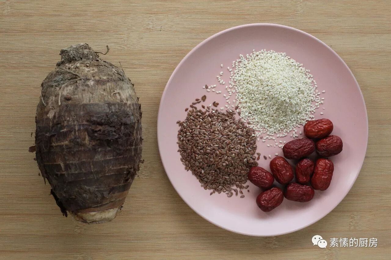 【主角】:香芋,白芝麻(生),亚麻籽(生),红枣。