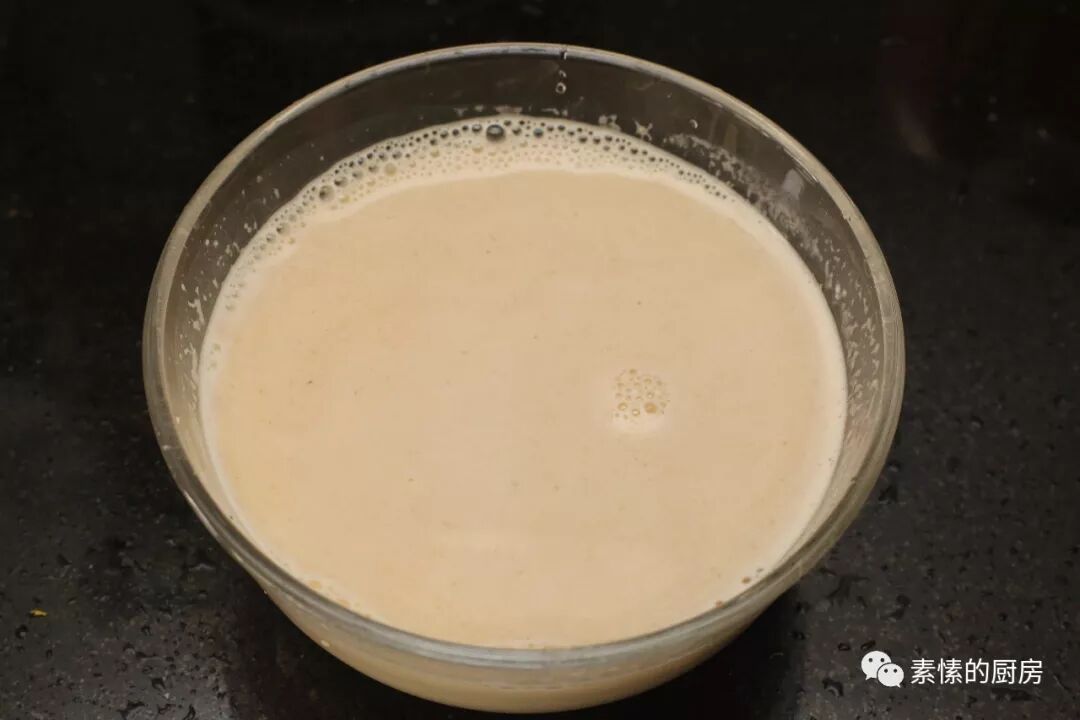 2.燕麦片加适量好水,用高速搅拌机打成浆,打久一点才细滑。