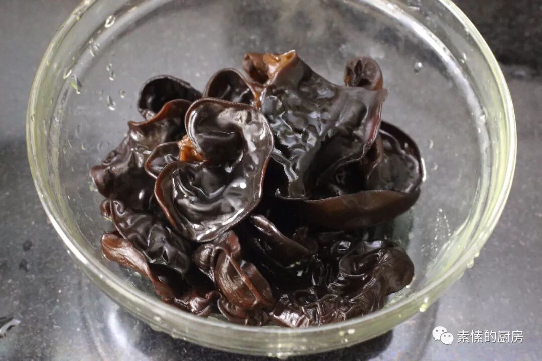 1.黑木耳数朵,好水泡开,捏洗干净。