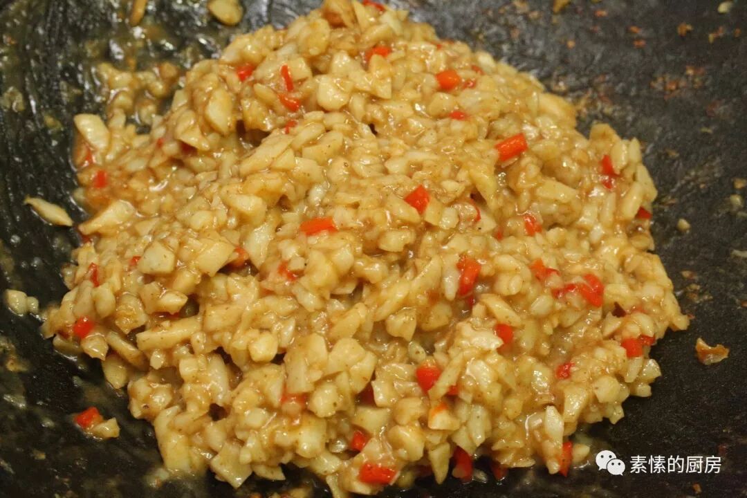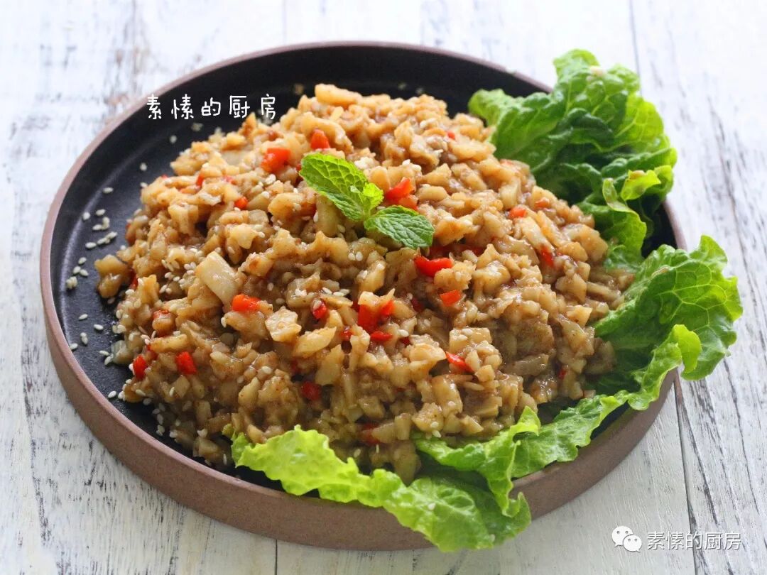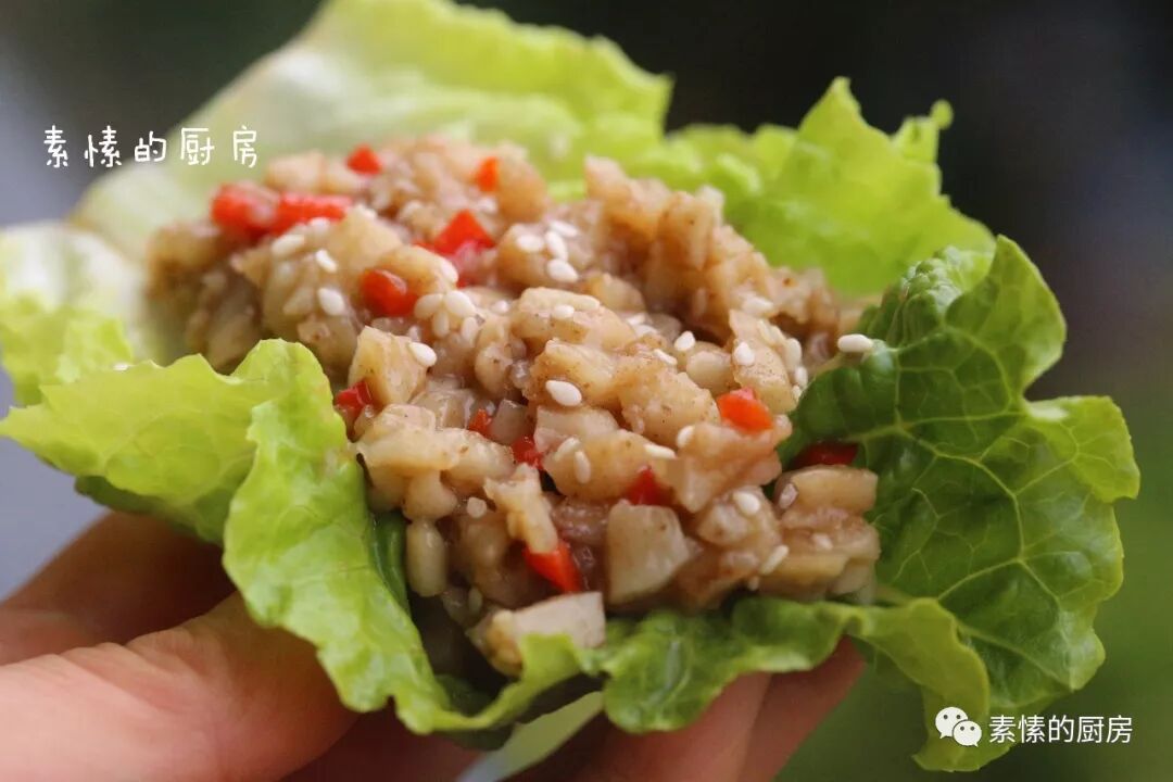 【推荐吃法】:一手拿一片生菜叶子,另一手取勺舀藕碎堆满在菜上,进嘴时要连菜带馅儿一起咬.....坐稳了,别好吃得从椅子上掉下来了。