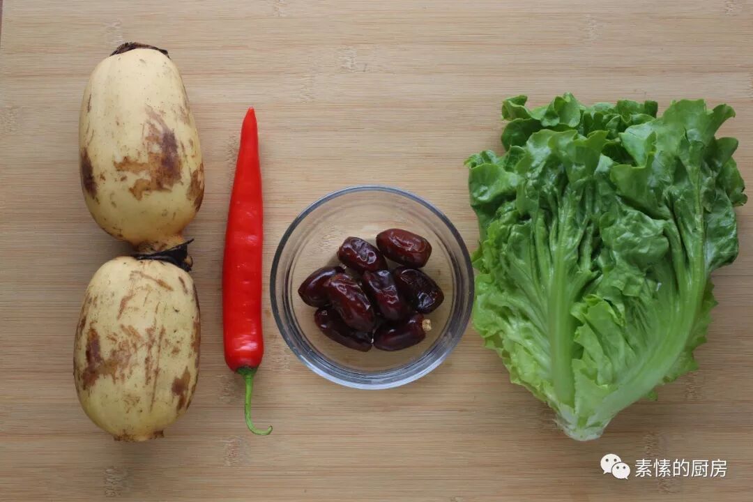 【主角】:莲藕,椰枣,不辣的红椒(可选),生菜(可选)。