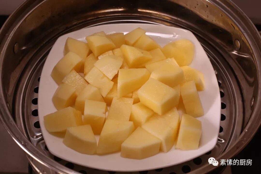 1.土豆去皮切小块,放开水锅里蒸熟。