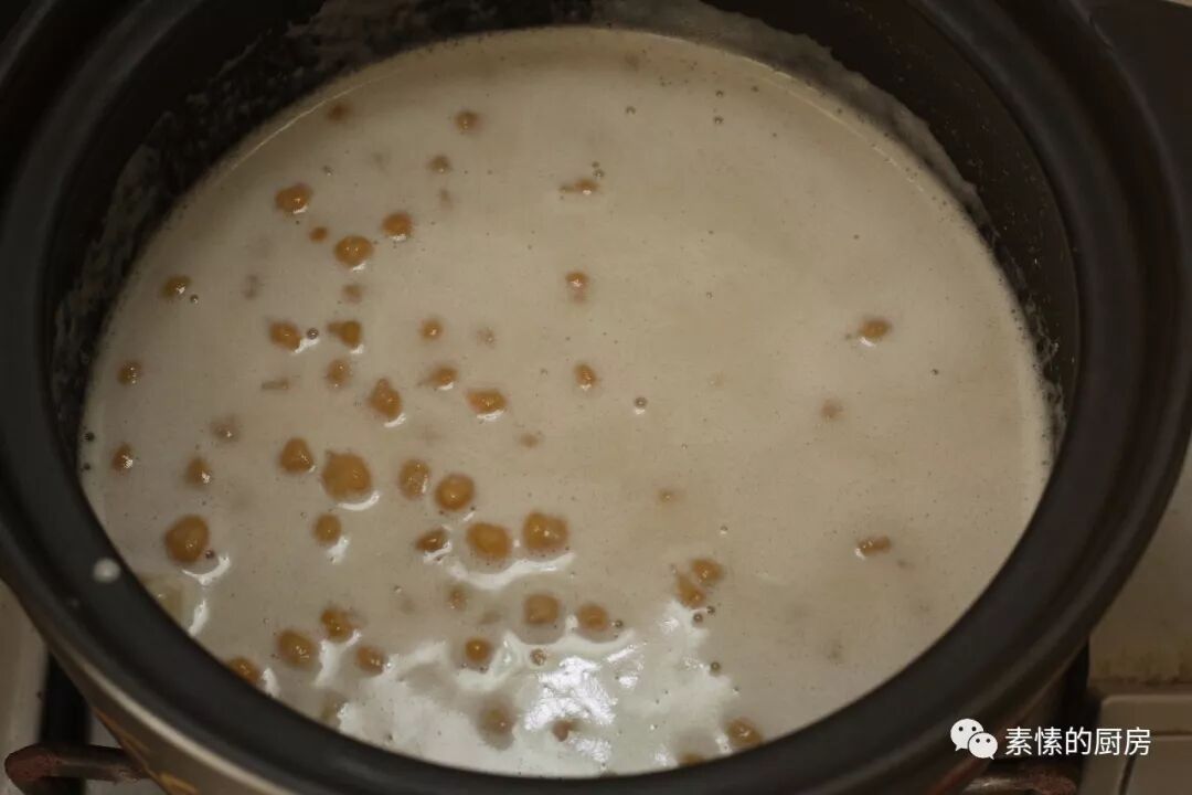 2.煮豆水不需太多,煮熟后不剩水为好。有时间的话,可以还有少许水时停火,在锅里继续焖一会收干水,令豆熟透。