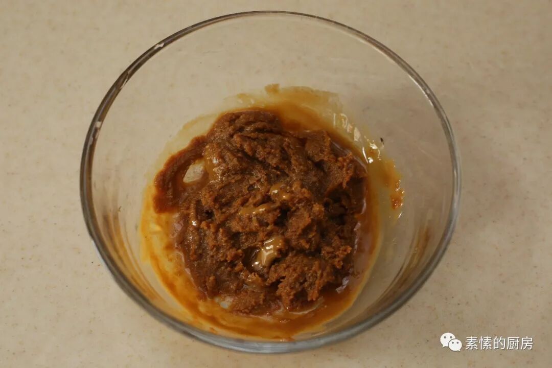 3. 用两勺芝麻花生酱和一小勺味噌调成混合酱,如果酱太干,可以加几滴水。或者准备其他自己喜欢的酱料。