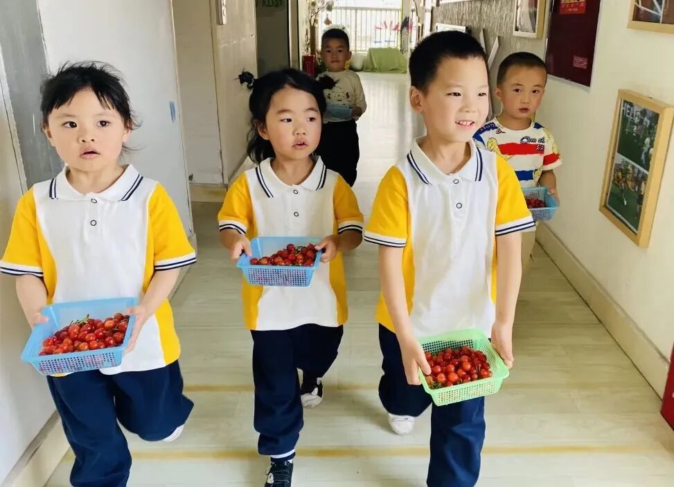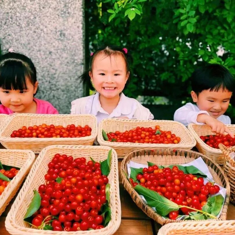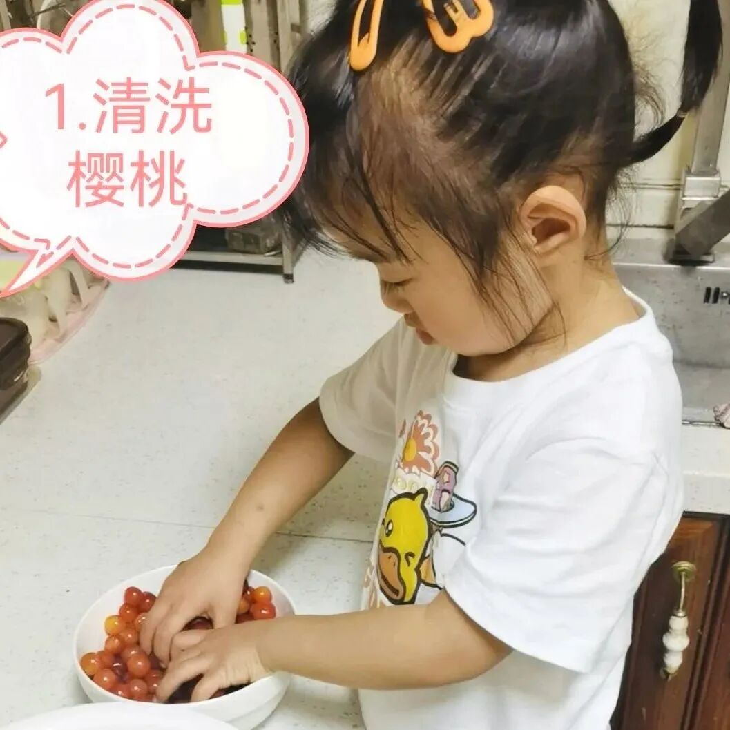 孩子们自己动手清洗樱桃