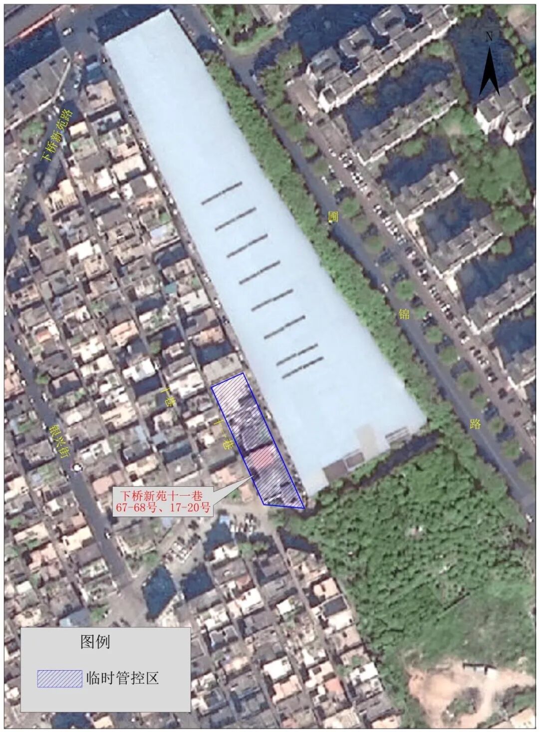 临时管控区域为下桥社区新苑十一巷67-68号、17-20号。