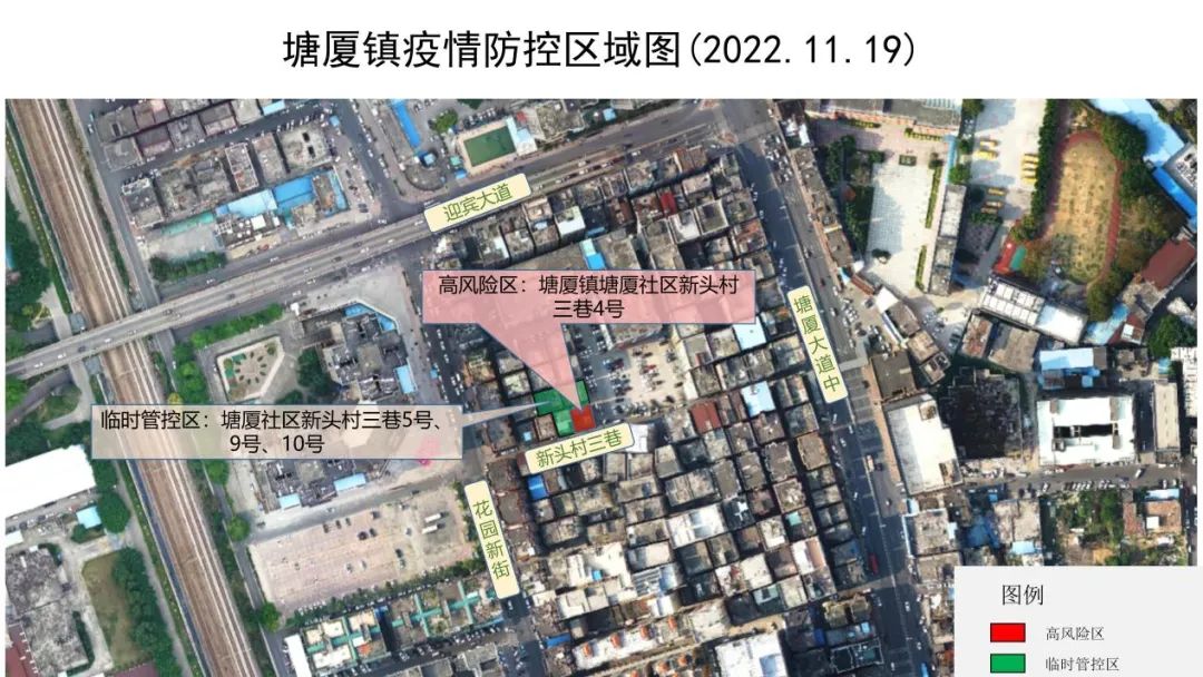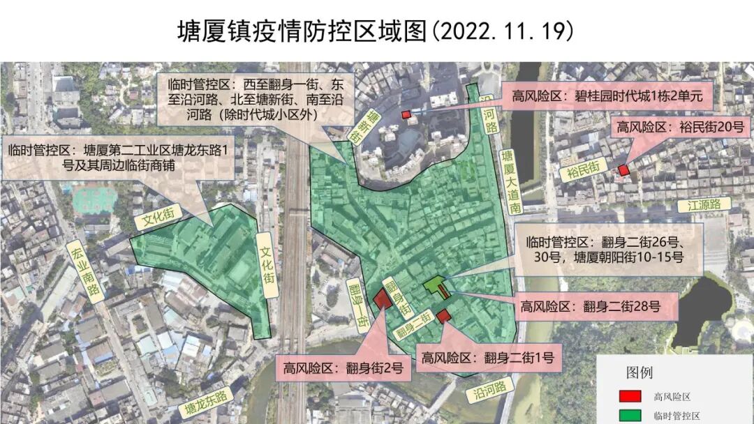 根据当前塘厦镇疫情防控工作需要,按照国务院应对新型冠状病毒肺炎疫情联防联控机制综合组《关于进一步优化新冠肺炎疫情防控措施 科学精准做好防控工作的通知》《新型冠状病毒肺炎防控方案(第九版)》和《广东省新冠肺炎本地疫情应急处置方案(第五版)》相关规定,经专家组研判,自11月19日起,塘厦镇调整风险区域如下: