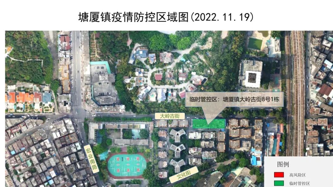 根据当前大岭山镇疫情防控工作需要,按照国务院联防联控机制综合组《关于进一步优化新冠肺炎疫情防控措施 科学精准做好防控工作的通知》《新型冠状病毒肺炎防控方案(第九版)》和《广东省新冠肺炎本地疫情应急处置方案(第五版)》相关规定,经专家组研判,自2022年11月19日15时起,大岭山镇部分风险区和防控措施调整如下: