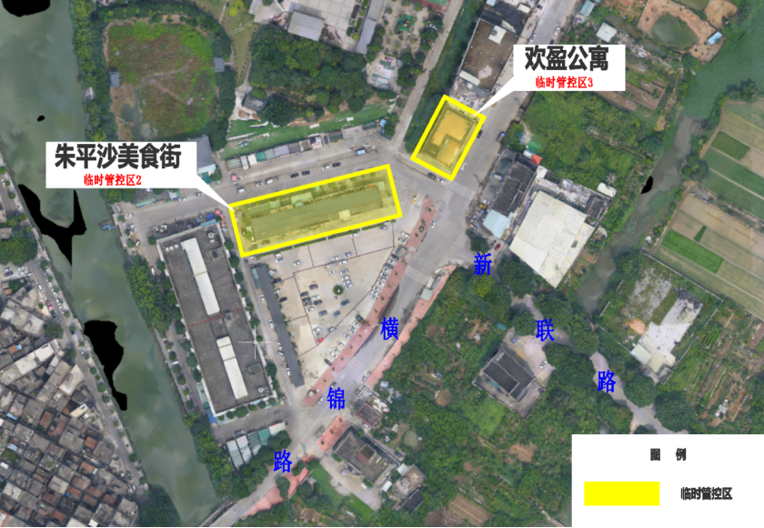临时管控区2、3:朱平沙村美食街、官洲村横锦路欢盈公寓。