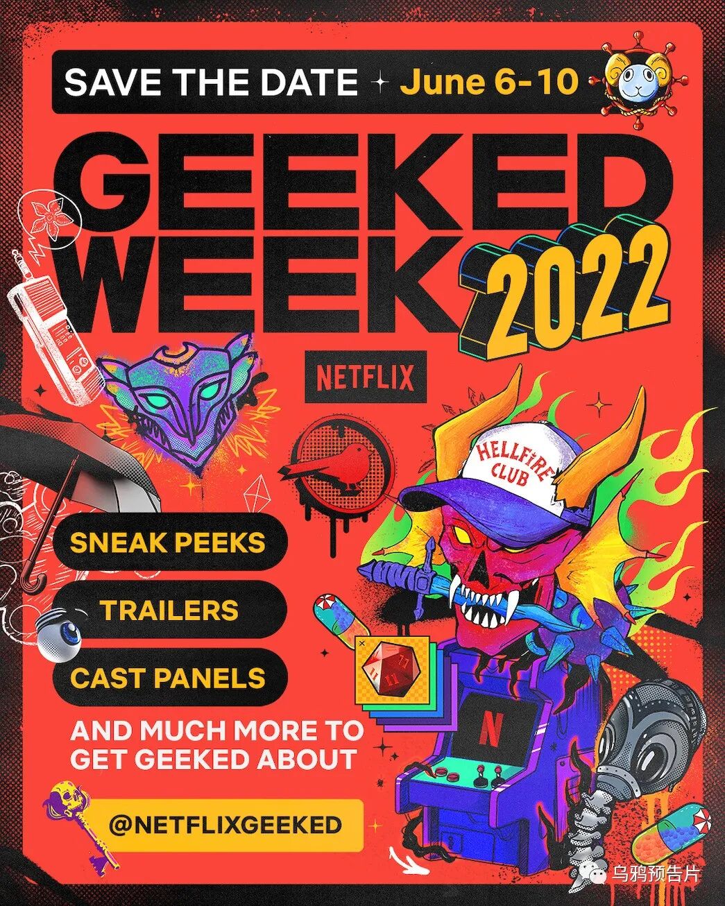 2022年度Nexflix极客周将于6月6日至10日回归,届时将举行为期五天的线上粉丝盛会。将会公布更多新电影新剧集等预告片及最新资讯!包括《怪奇物语 第四季》《睡魔》《伞学院 第三季》《灰色人》《鹿角男孩 第二季》《生化危机》《海兽猎人》《弥留之国的爱丽丝 第二季》《赛博朋克:边缘跑手》《善恶学校》《英雄联盟:双城之战 第二季》《茶杯头大冒险 第二季》《蜘蛛头》等。你期待哪些?