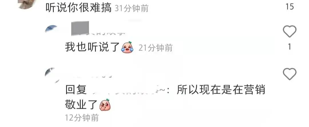 在李梦的评论区底下有网友留言说听说她很难搞,还有人在底下回复称,李梦的此番操作是在营销敬业。