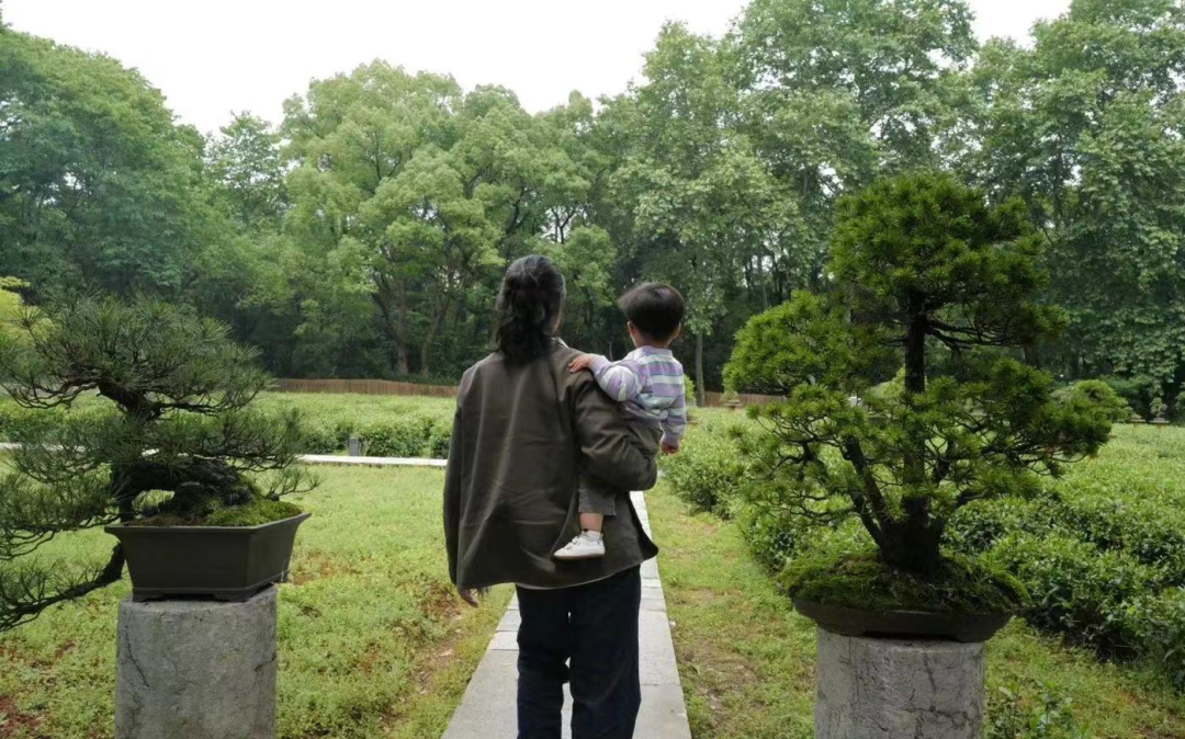 更早以前,朱丹还向大家分享了一家四口去林间散步的美好时光,并晒出两张周一围抱着儿子的背影,深情地写道“女儿画绿,儿子寻绿,我们,只需要跟随着”。