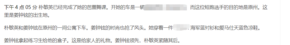 当天下午四点左右,朴敏英上完芭蕾课,便乘坐豪车与姜钟贤一起回到男方的老家。