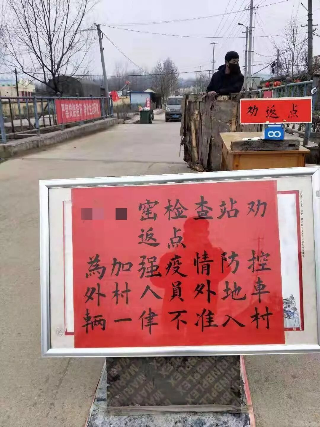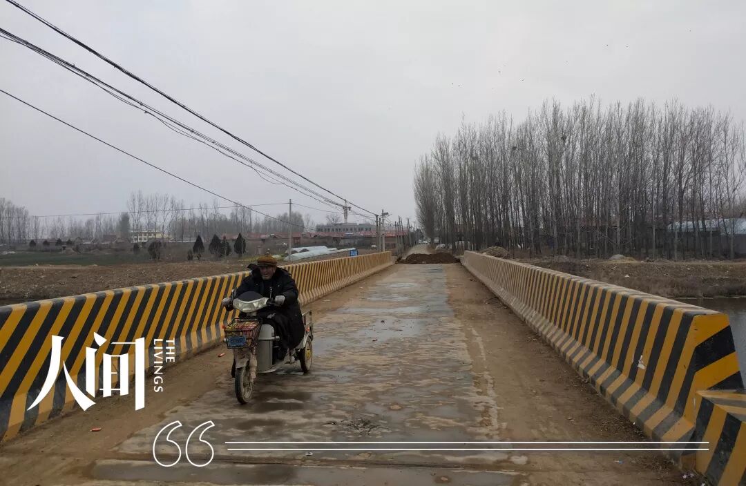 大年初三,升爷就开始了工作,年轻时就丧妻的升爷如今一个人在邻村的养殖场里打工,我告诉升爷前面通往邻村的公路也被封了,升爷就嘟囔了一句:“老子他妈的走岔路也要去养殖场干活,那3000多只鸭子等着我去喂呢,要不然它们今天就会饿死!它们饿死了,我也就饿死了,你说对不对?”望着升爷远去的背影,我难免一阵心酸。70多岁的升爷在养殖场大棚里佝偻着身子伺候着那3000多只嗷嗷待哺的扁嘴鸭,一年到头能赚2万块,要说能多点什么,也就是每天偷偷犒劳自己的几只鸭蛋。这些年,升爷最大的爱好就是喝着小酒就着鸭蛋,喝多了的时候,就念叨着自己多年前去世的老婆。继续往南走,远处终于看到了逡巡在封存帐篷外的几个小青年,一个个戴着口罩,如同天兵天将般在临时搭建的帐篷外走动,与其说是为了阻止外村人进入太平村,倒不如说是为村长老张站岗放哨。村长老张今年已经50多岁了,刚刚上任,踌躇满志。封村抗疫大概就是对他的第一考,用他的话说,就是“只许胜利不许失败”。就在昨天晚上,老张带领村两委成员深夜敲响了一个于1月上旬从武汉搭飞机回村的小伙子的院门。因为工作方式的问题,惹怒了小伙子的妈妈,好不容易才解决了居家隔离的问题。从外面回来,已是中午,午饭过后,陪父母去看望住在村子东边的二舅妈。87岁的二舅妈3年前摔折了胯骨后就再没站起来,躺在病榻上倒也还算精神矍铄,这个一辈子受苦受难的老人直到晚年才停止了忙碌的脚步,没想到却是以摔伤卧床的方式。虽然躺在病榻上,可老人对外面的世界依旧十分关心,聊完疫情,又挂念起远在日本打工的儿媳。恰巧儿媳今天打来微信视频,老人躺在病榻第一句话竟是咨询日本那边有没有受疫情影响,不行就早点回国,感动得儿媳妇在视频那头眼泪直流。去年,二舅妈的大哥大嫂在同一年里先后去世,一个享年95岁,一个享年96岁,算是高寿喜丧。二舅妈显然希望自己跟大哥大嫂一样能多活几年,然而一日三餐、吃喝拉撒都需要儿子照应的现实也困扰着她。二舅妈对于儿子的悉心照料感动无比,却又心怀愧疚。在医疗和养老条件相对落后的村子里,当一个人失去劳动能力后逐渐老去,如何有尊严有幸福感地度过晚年,成了所有人都绕不开的问题。早晨7点开始,字正腔圆的广播又响起了,两个播音员再一次围绕着如何防控新型冠状病毒展开了新一轮的宣传。上午 8:40,村长老张和前两天一样来到村两委办公室按部就班地坐在办公桌前,对着劣质麦克风开始了宣讲,今天气氛尤为严肃:“全体村民注意啦,全体村民注意啦!下个通知哈,下个通知哈。凡是从广东、湖南、四川、重庆、安徽、河南、北京返乡的人员,拿着身份证到村检测点登记!为了家人健康和他人的健康,凡是从以上几个省市回来的人员,必须抓紧到检测点登记。“另外,从咱们村通往西营村和唐营村的两条村道今天也正式封堵哈,那些打算走亲戚看朋友就不要出去啦;还有啊,你要是打算去其他村玩耍的,必须要带着身份证,想去县城逛超市的,也得带身份证!”| 通往另外一个村的桥已被封死。一个老人骑着电动车转了回来。(作者供图)