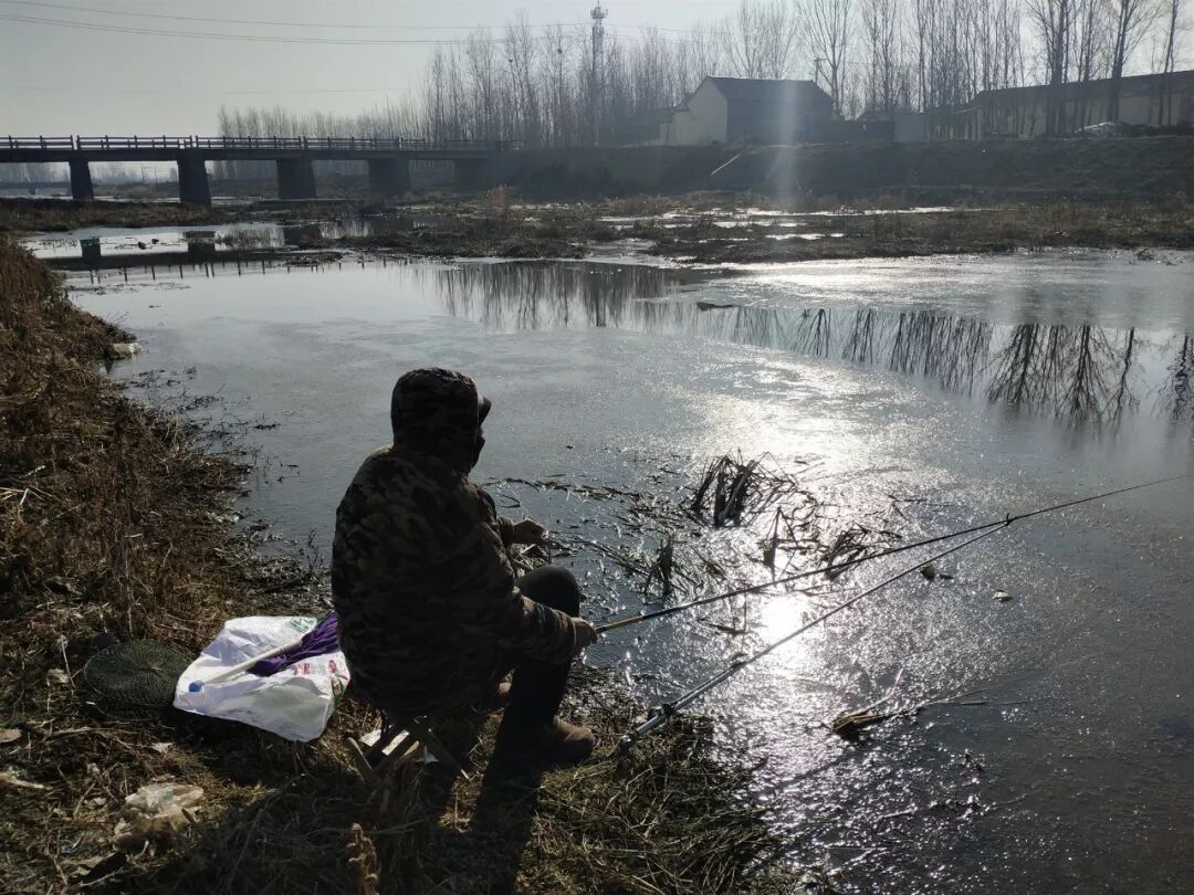 奶奶有些生气,说是走娘家来了你们还要看我的身份证。3个中年男人一听,立马毕恭毕敬地问奶奶去谁家?奶奶则反问他们是谁家的孩子?一来二去,3个男人发现按照辈分讲,他们还得管奶奶叫二姑。大家立刻说,要亲自送奶奶进村——我突然觉得,这是来到了奶奶的地盘。村子中央大路上,在晒太阳的老人看见奶奶回来,都过来打招呼,奶奶则让我把电动车骑得慢一点。看到娘家的邻居们,奶奶格外高兴,走两步就要停下来和他们聊家常,一条并不太长的乡村大路,足足走了半个小时。抵达姨姥姥家的时候已接近中午了,87岁的姨姥姥坐在院子里晒太阳,我没有打搅两位老人的聊天,独自搬着马扎坐在姨姥姥家的院子门口晒太阳,想起年少时,常跟随奶奶来村里走亲戚。眼下四处风声鹤唳,自己能得以在此宁静地追忆往昔,也不失为一种幸福。按照传统风俗,正月初七,也是太平村“送年”的日子,意为春节已经过去,人们要再一次投入到日常生活的忙碌中去。这天早晨,父亲和母亲起得很早,母亲点燃了一炷香放在院子的香炉中。父亲将爆竹挑在竹竿上点燃,还是一阵噼里啪啦,春节就这样结束了。今天,走出院子站在大街上晒太阳的人终于多了起来,也有人步行着来到田里看庄稼。民叔又骑着电动车背着鱼竿来到怀河岸上,安下马扎,坐在河边上开始钓鱼。同行的还有老光棍森叔,森叔的设备非常专业,先把用白酒、香油和蜂蜜浸泡过的小米撒到河里去,然后再把挂有蚯蚓的鱼钩扔到河中心去,最后才挑着鱼竿坐在马扎上安静地等待鱼儿上钩。尽管设备专业、流程又规范,但往后的整整两个小时里,森叔一条鱼也没钓到。反倒是民叔连续钓到了4条胖乎乎的鲫鱼。