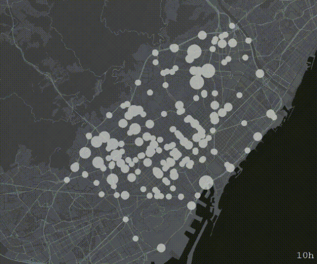 最近越来越喜欢这种动态的地理要素专题图(老外给它们起了个专业名字叫geogiffery)