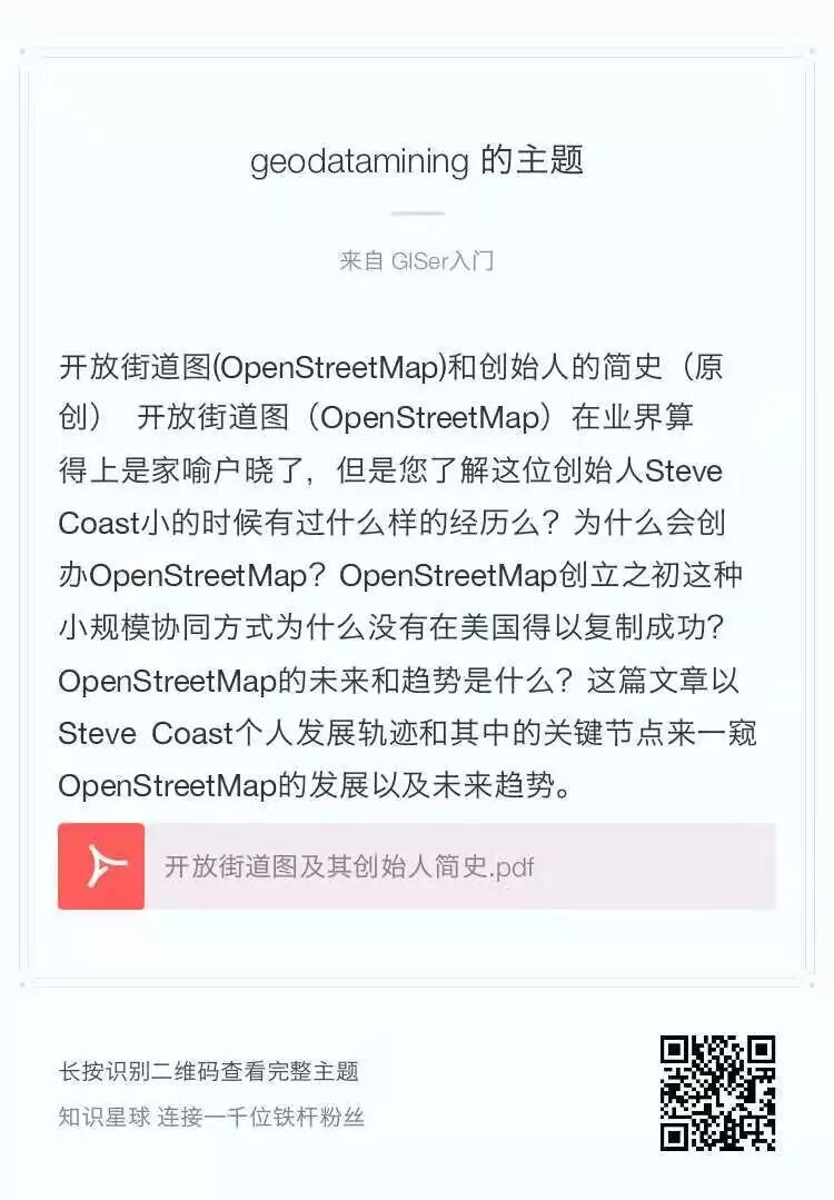 据知识星球中的Geodataming老师分享的一个有关OSM的介绍文档,在OSM创建之初主要是来处理GPS轨迹数据滴,感兴趣的童鞋可以扫码了解下。